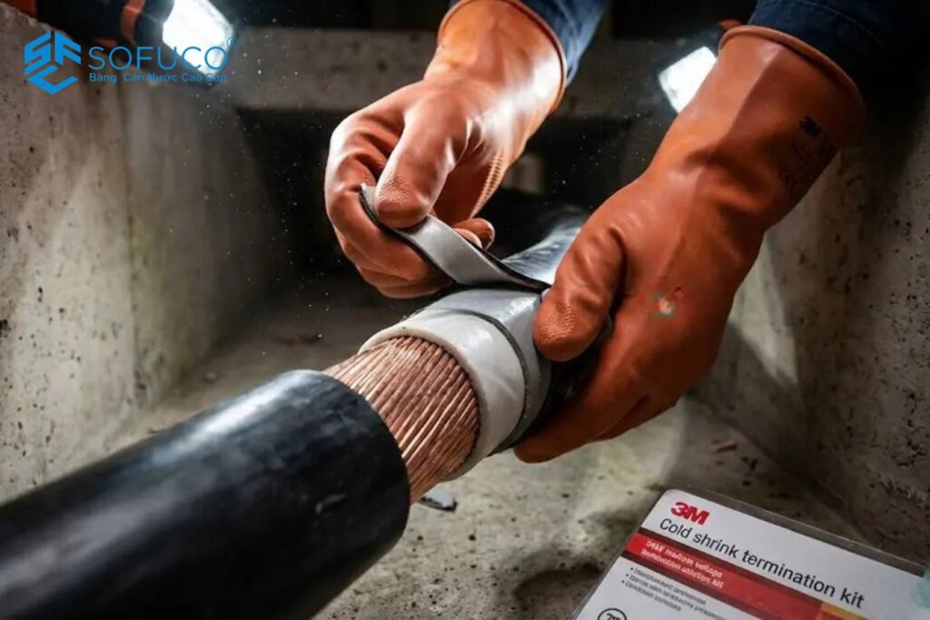 Các vị trí cổ ống kỹ thuật và hố cáp: Đây là những “điểm đen” về thấm dột. Ngoài việc dùng băng cản nước PVC, kỹ sư thường kết hợp thêm thanh trương nở để bịt kín hoàn toàn các vị trí ống luồn cáp điện xuyên tường.